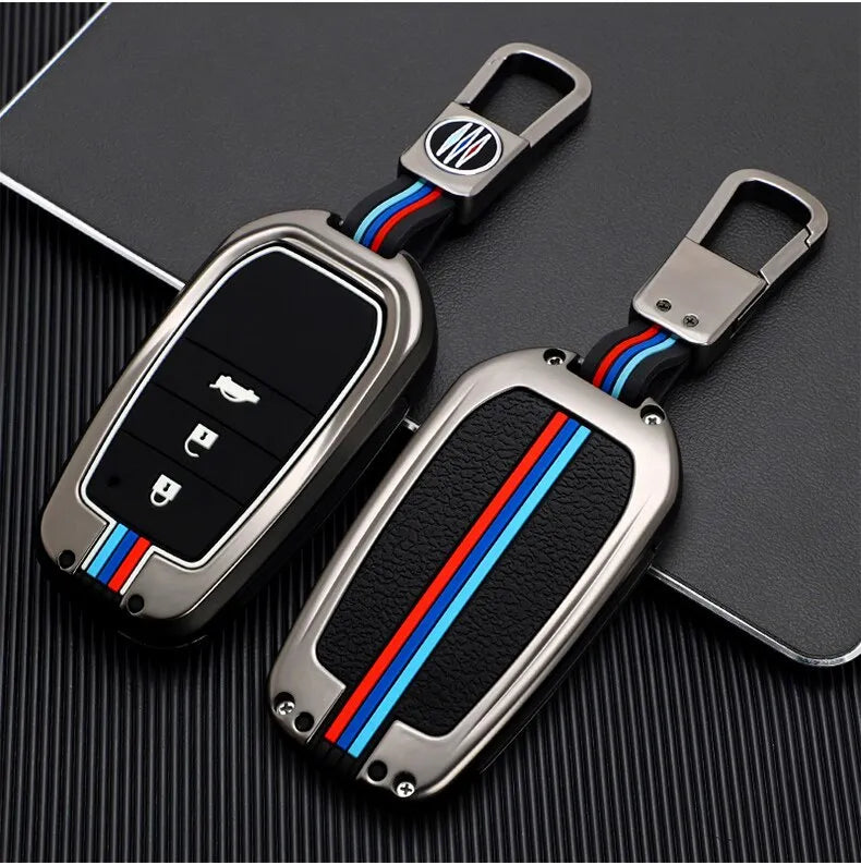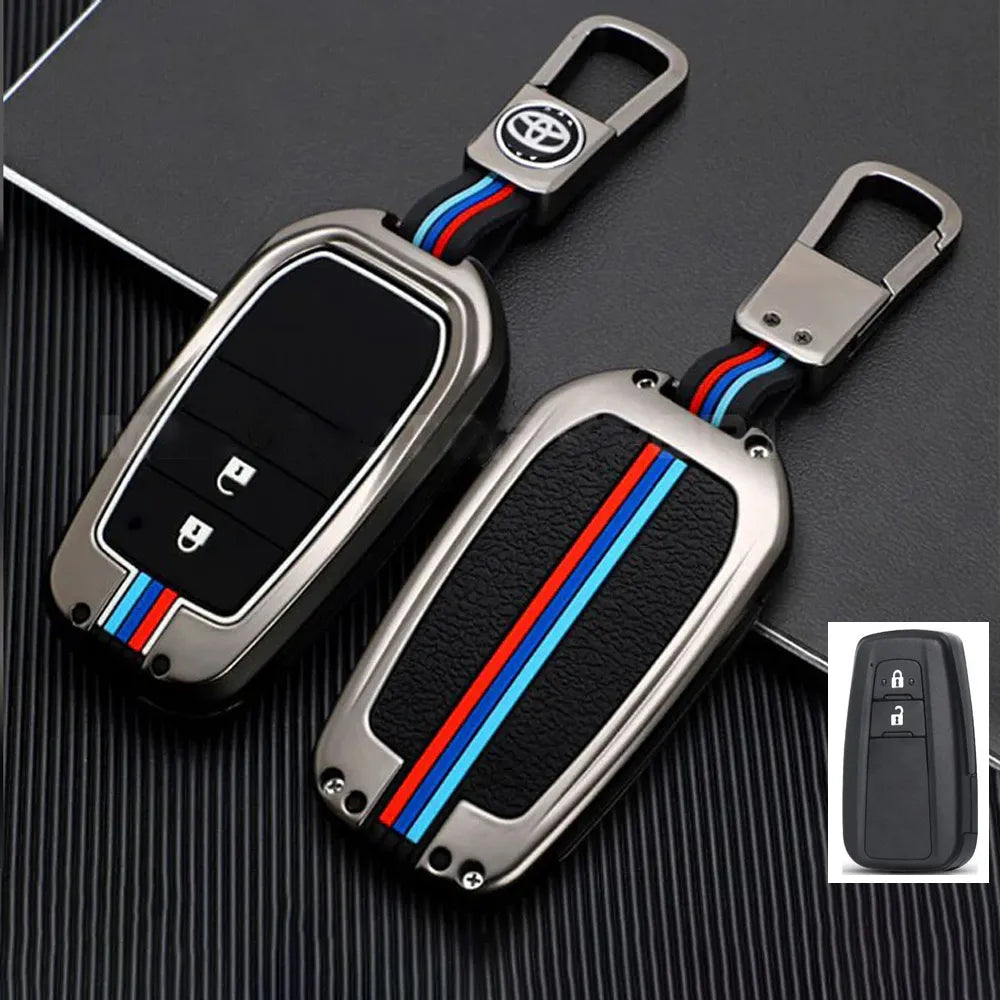 Car Metal Key Cover With Car Key Ring And Soft Silicone For Toyota CHR, Prius, Corolla Cross, Prado