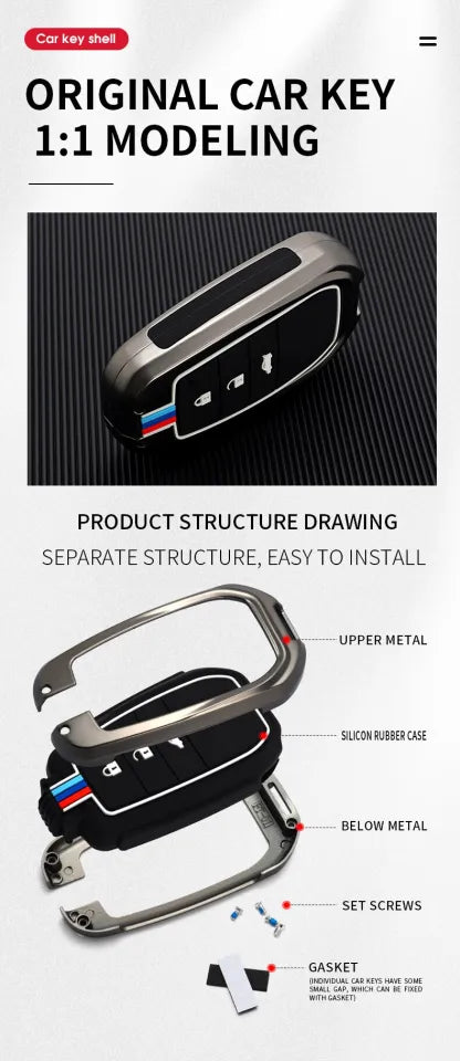 - Slide the metal and silicone cover onto your car key.